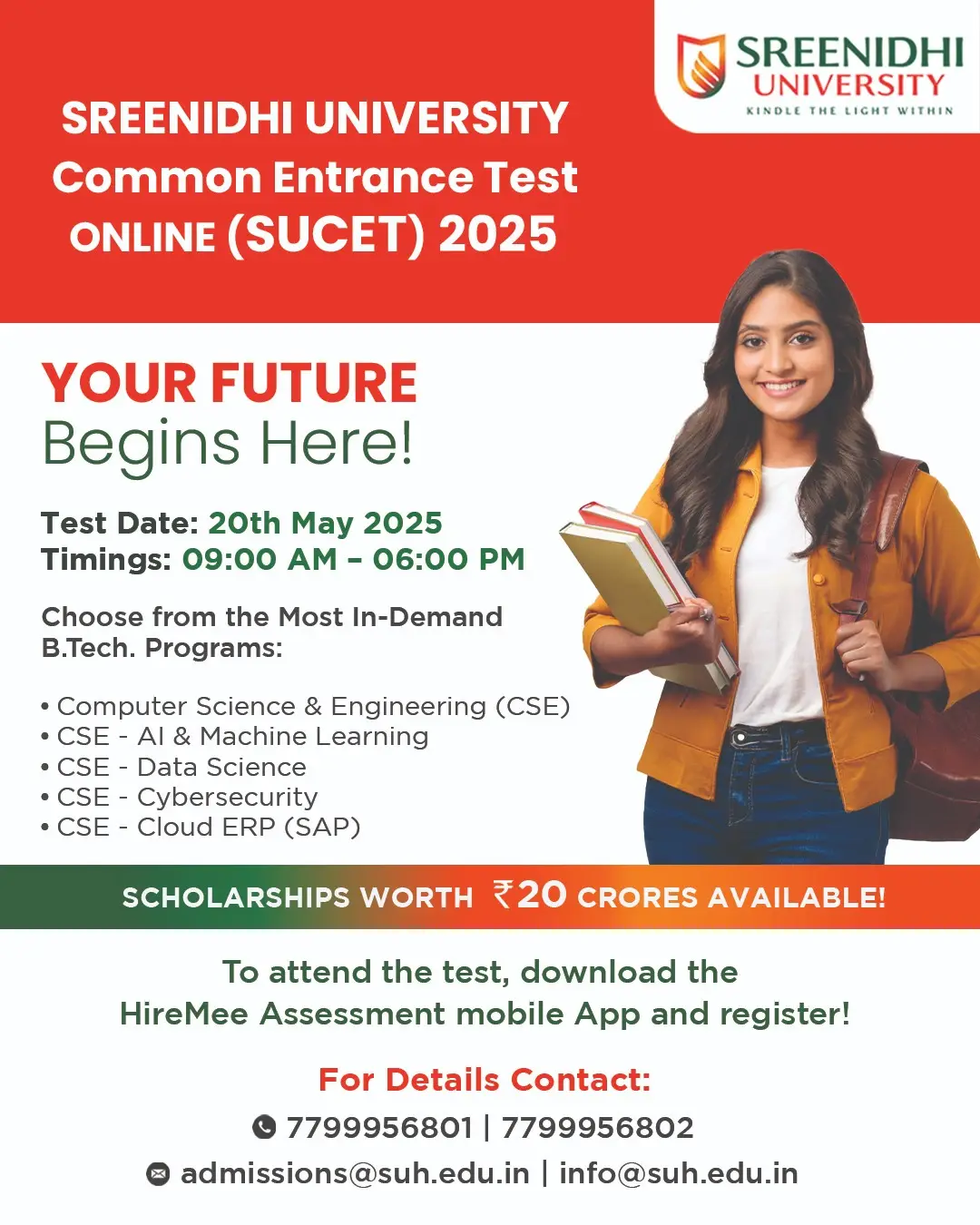 Contact: 7799956801 | 7799956802 | admissions@suh.edu.in | info@suh.edu.in
